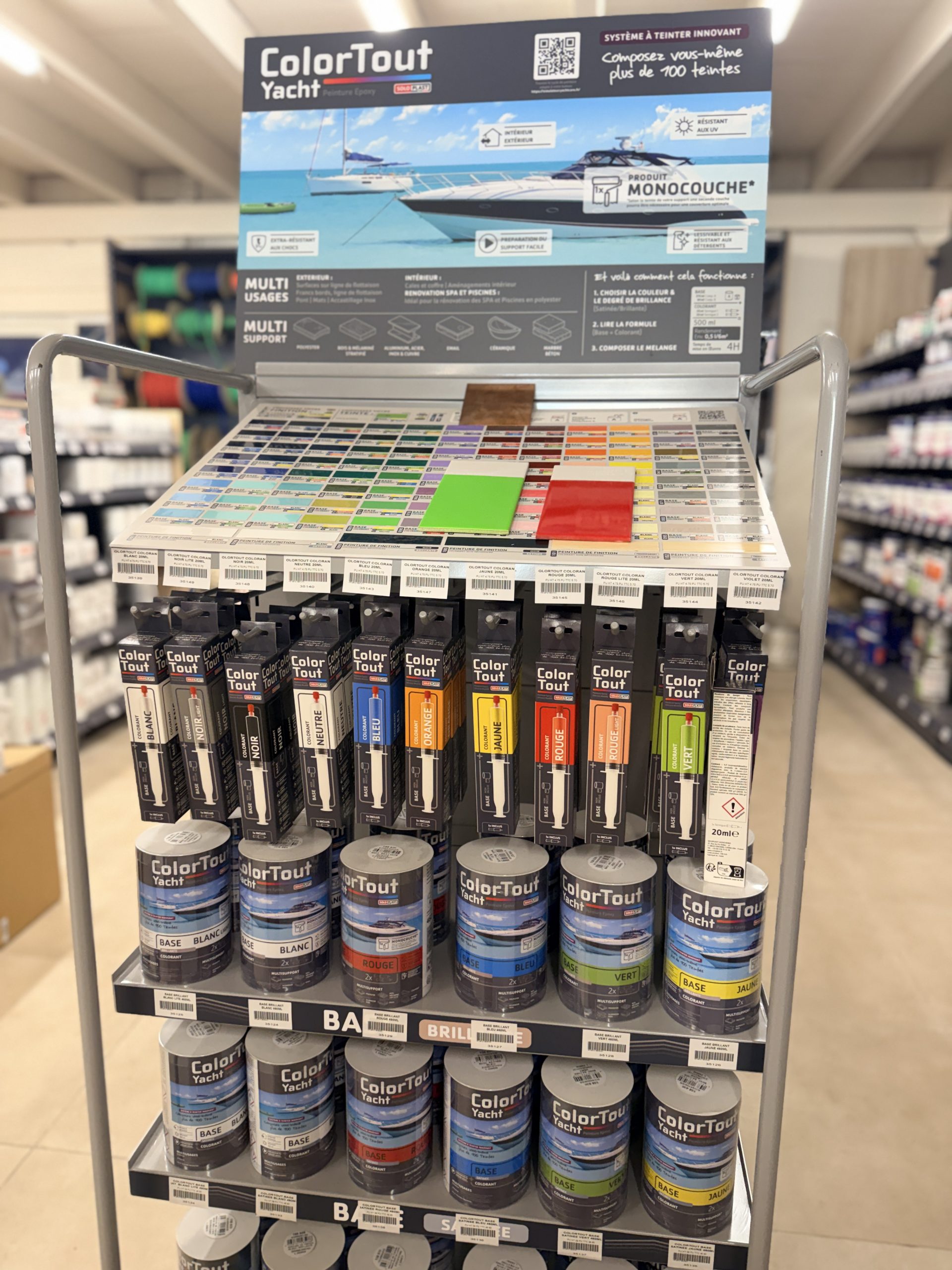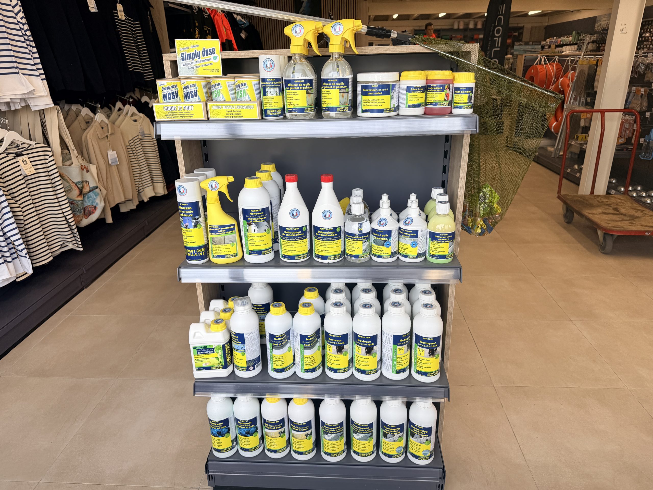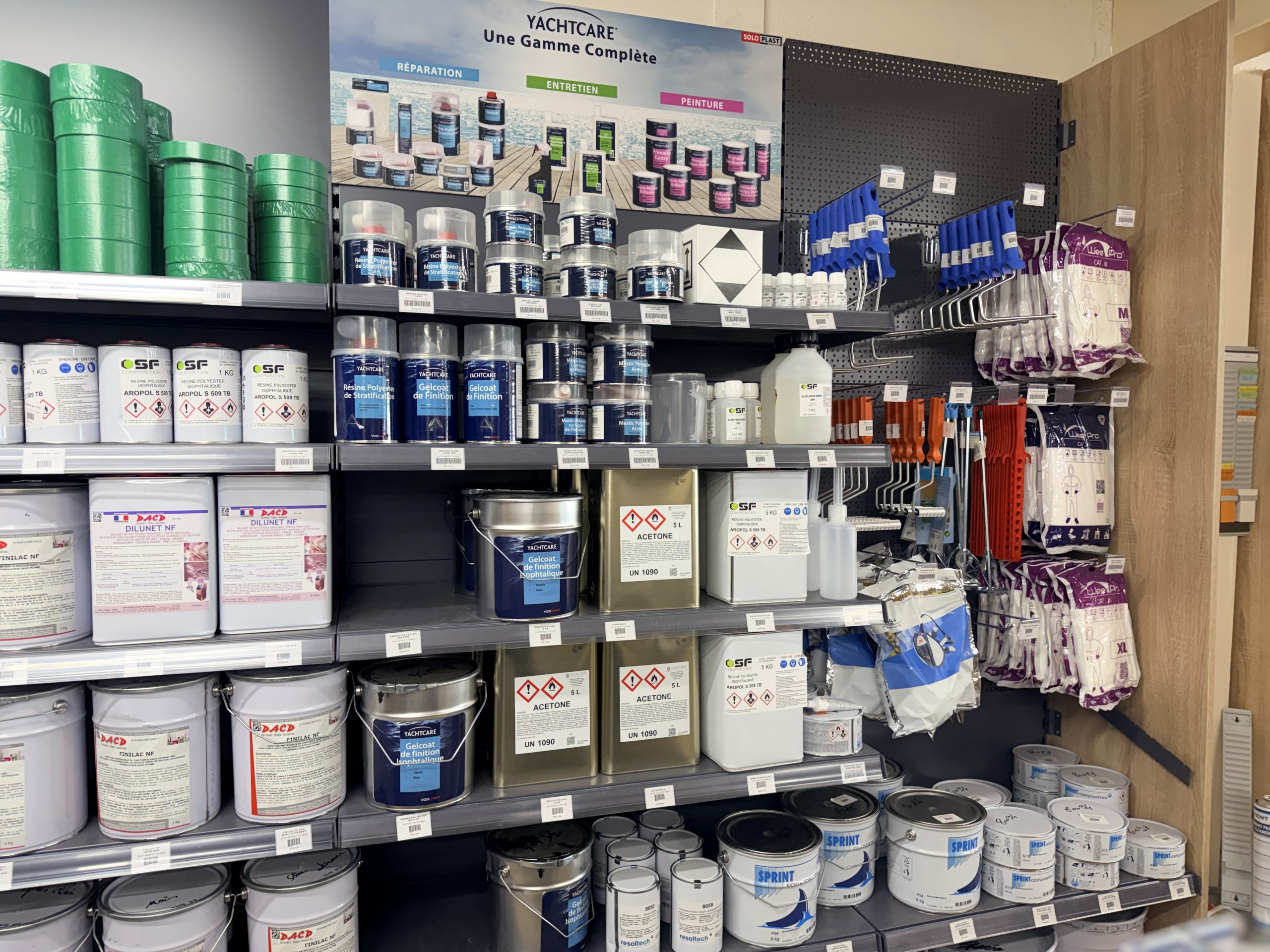 Large gamme de produits marins : peinture, mastic, résine, textile pro, bottes, vêtements techniques, accessoires.