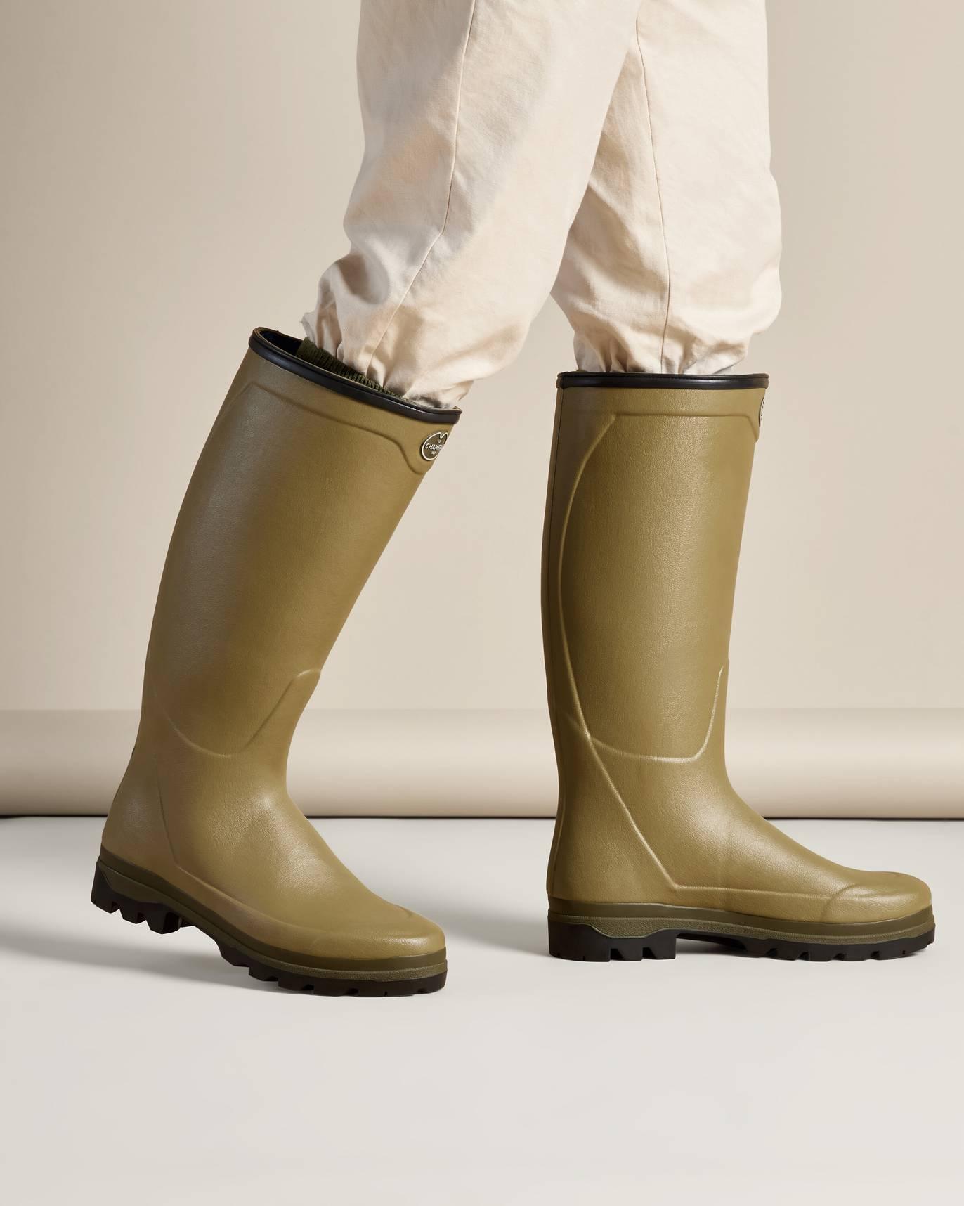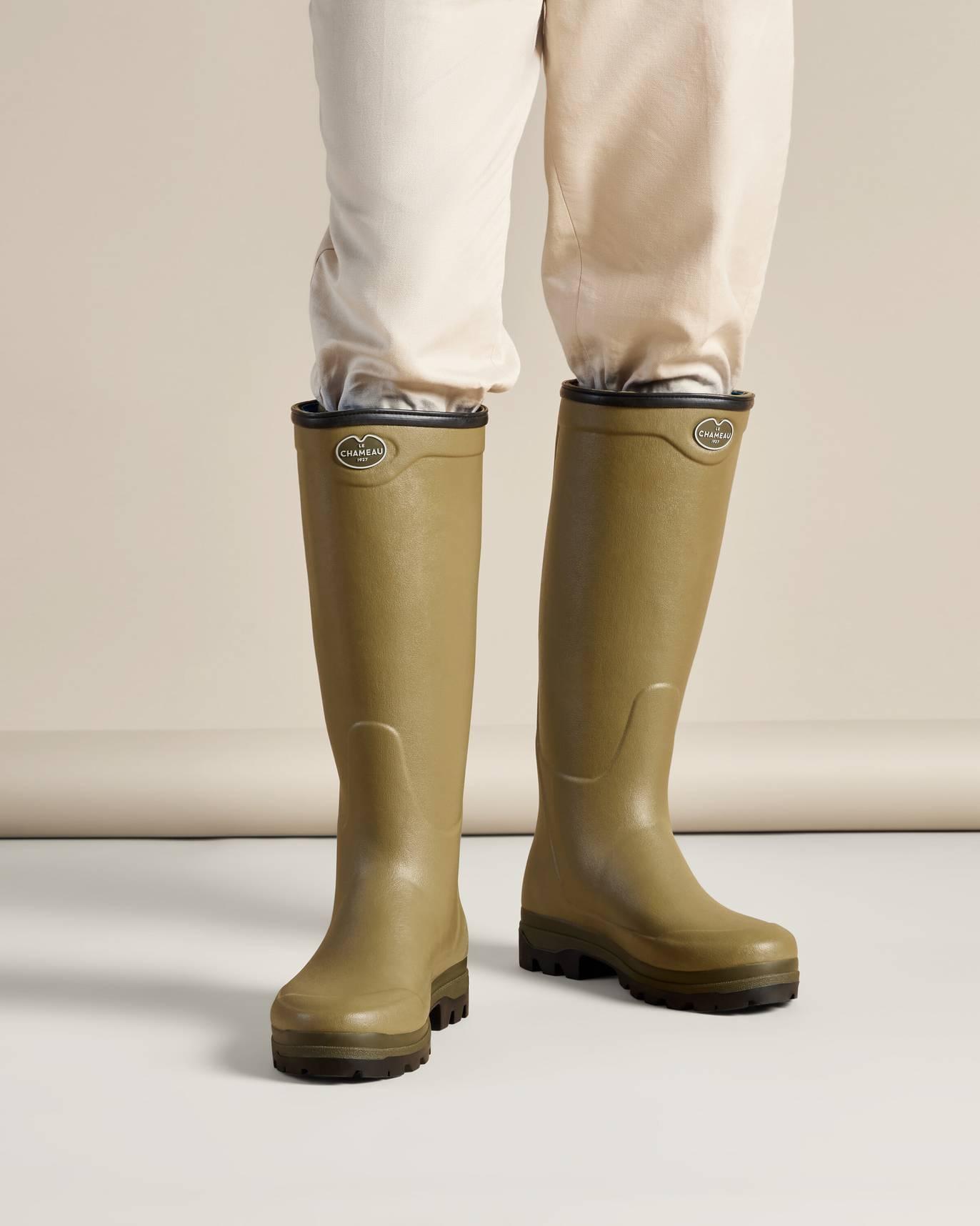 Le Chameau fabrique chaque paire à la main. Le caoutchouc naturel Chamolux apporte souplesse, flexibilité et confort. De plus, la forme plus ample au mollet améliore l’aisance pendant la marche.