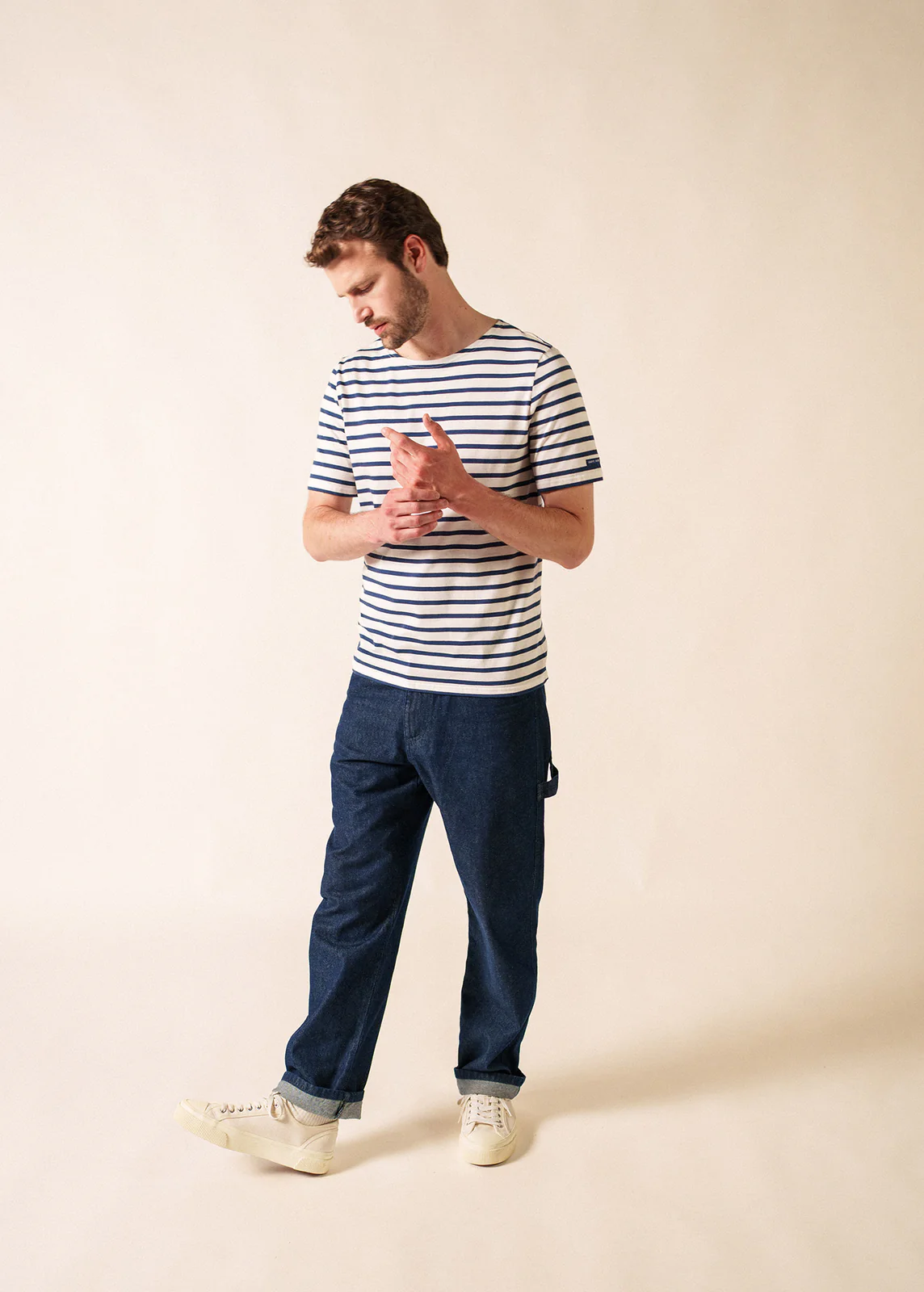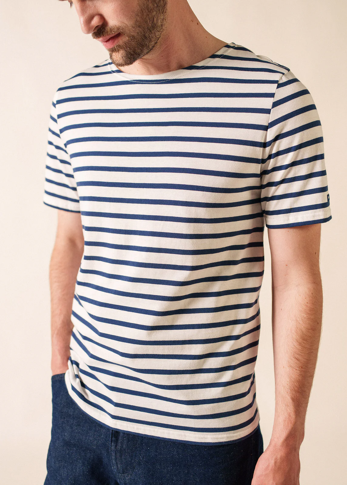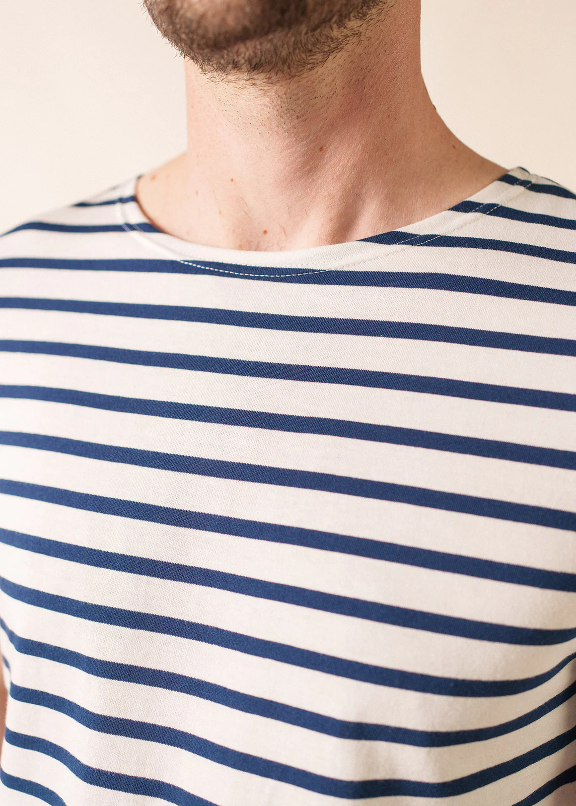 Estivale avec ses manches courtes, la marinière Levant Modern a une connotation balnéaire qui rappelle également que, lors de son institution militaire, il arrivait fréquemment que les marins coupent eux même les manches de leur marinière pour être plus à l’aise. – Marinière